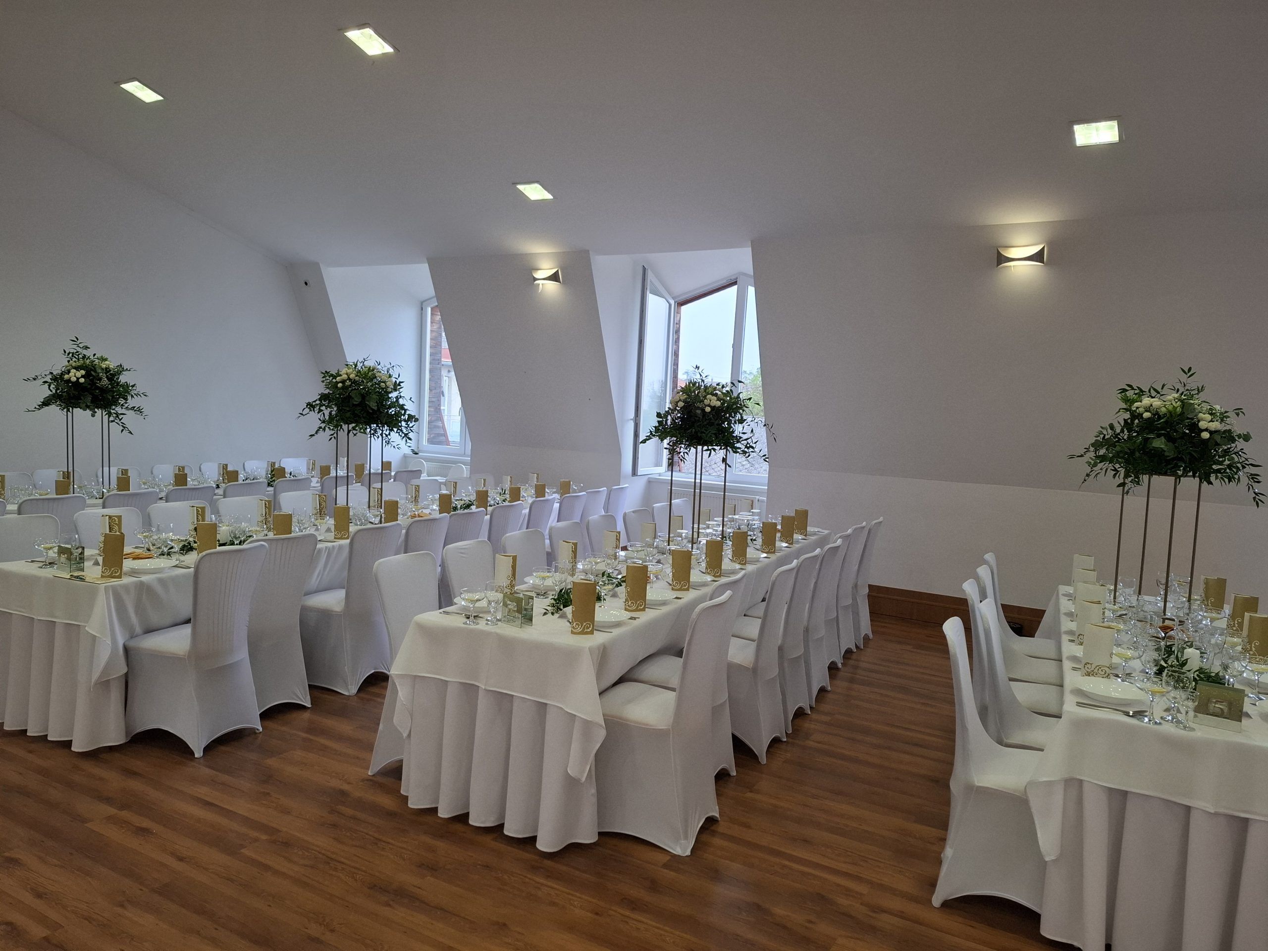 - Kvetinová výzdoba zo živých kvetov: aranžmány na hlavný stôl, stoly hostí aj vstupné priestory